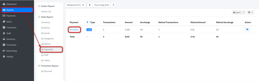 1. Log in to the POS backend and go to the Reports > Sales Report > By Payments page.